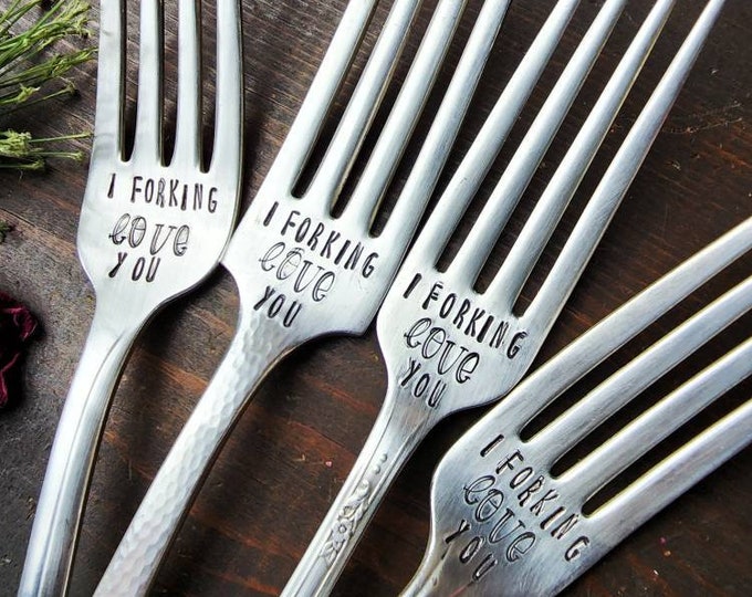 . I Forking Love You Fork: Hand Stamped Vintage Silver, Valentines Birthday Gift -- Him Girlfriend Boyfriend Husband, Love You More, Gift Box (3k) Sale Price $19.79 $ 19.79 $ 21.99 Original Price $21.99 (10% off) Add to Favorites I forking love you, I forking love you too!. - Mirror polished, elegant style.-Classic design, comfortable to hold.-Easy to clean, dishwasher safe
